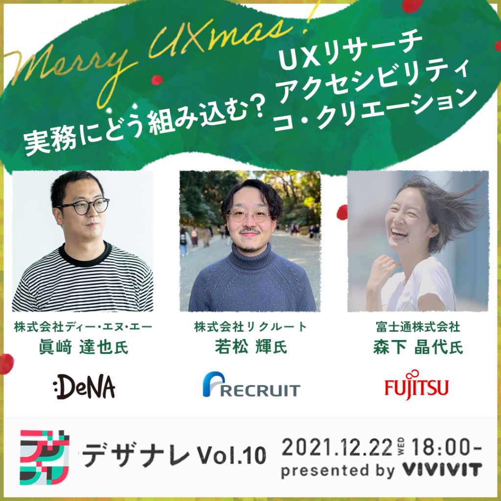 2021年12月22日に「実務にどう組み込む?UXリサーチ、アクセシビリティ、コ・クリエーション デザナレVol.10」を開催