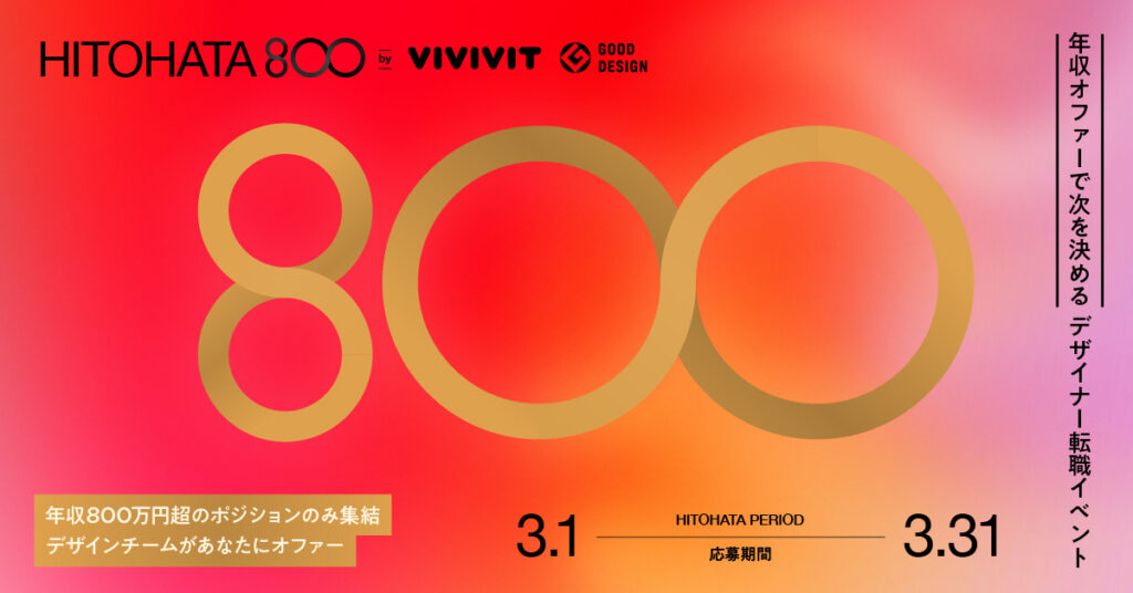 年収800万円超のオファーが届く、デザイナー向けハイクラス転職イベント「HITOHATA 800」を開催
